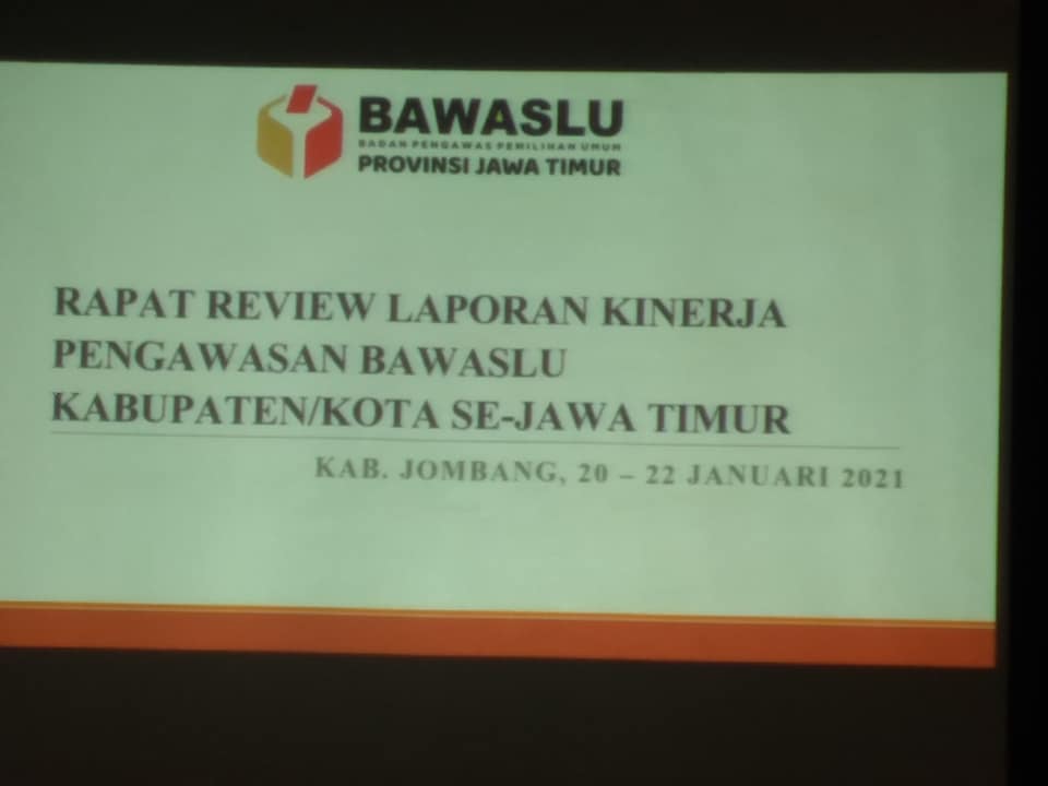 Tahun 2021 Bawaslu harus Pandai dalam Memaksimalkan Kinerja Jombang. Bawaslu Jawa Timur menyelenggarakan Rapat Review Laporan Kinerja Pengawasan Bawaslu Kabupaten/ Kota se-Jawa Timur di Kantor Bawaslu Kabupaten Jombang, 20 - 22 Januari 2021.Kordiv PHL Bawaslu Kota Kediri, Mansur ikut menghadiri acara ini dan telah menyiapkan berkas-berkas kegiatan Bawaslu Kota Kediri selama tahun 2020 untuk dilaporkan dalam acara ini. Kordiv PHL Bawaslu Jawa Timur, Aang Kunaifi menyampaikan dalam sambutannya, tahun 2021 ini, anggaran dan kegiatan Bawaslu akan minim, oleh karena itu Bawaslu harus pandai memaksimalkan kinerja meskipun anggaran sedang minimal. Oleh karena itu, evaluasi kinerja di tahun 2020 sangat diperlukan untuk dapat melaksanakan kerja pengawasan di tahun 2021.Hal senada juga disampaikan oleh Ketua Bawaslu Jawa Timur, Muhammad Amin, dalam pembukaan acara tersebut. Bawaslu Kabupaten/ Kota yang telah melaksanakan Pilkada 2020 perlu belajar kepada Bawaslu Kabupaten/ Kota yang tidak melaksanakan Pilkada tahun 2020 yang telah melakukan kegiatan di luar tahapan Pemilu.
