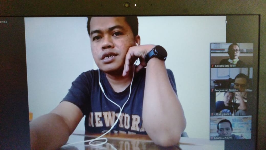 Kota Kediri. Koordinator Divisi Pengawasan Bawaslu Provinsi Jawa Timur secara mendadak mengajak Koordinator Divisi Pengawasan Bawaslu Kabupaten/ Kota se-Jawa Timur untuk berdiskusi melalui media dalam jaringan (online) pada hari Senin, 27 April 2020 dari kantor atau rumah masing-masing mulai pukul 10.30 hingga selesai.