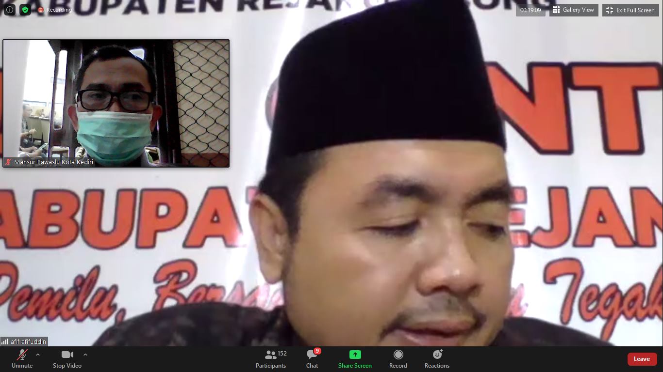 Kota Kediri. Kordiv PHL Bawaslu Kota Kediri mengikuti Webinar yang diselenggarakan oleh Koalisi Kampus Untuk Demokrasi Papua dan menghadirkan narasumber Moch. Afifuddin, Anggota Bawaslu RI dengan tema Problematika Pemutakhiran Data Pemilih pada Daerah Non-Pilkada pada 16 Juli 2020 mulai pukul 08.00 WIB melalui Zoom.