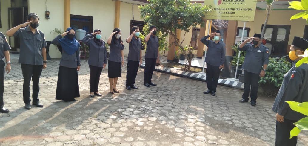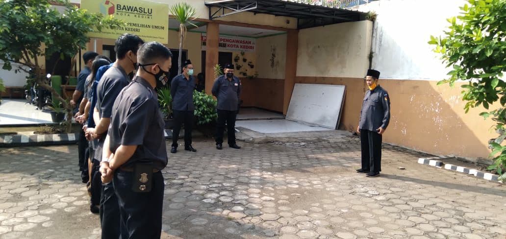 Kota Kediri, 31 Mei 2021. Bawaslu Kota Kediri mengadakan apel pagi di halaman Bawaslu Kota Kediri yang dilaksanakan pukul 08.15 WIB. Apel ini diikuti oleh Komisoner beserta jajaran staf Bawaslu Kota Kediri, dan yang menjadi komandan Apel yaitu saudara Roby. Mansur, selaku pembina Apel menyampaikan kepada seluruh staf untuk tetap menjaga solidaritas teamwork dan selalu menjalin hubungan kerja sama yang baik. Selain itu juga selalu mengingatkan agar bekerja diniatkan untuk mencari Ridhlo Allah SWT.