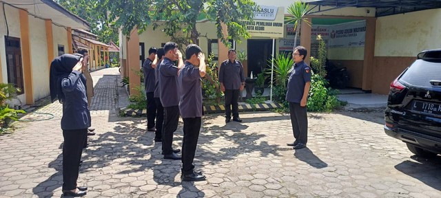 Senin, 31 Oktober 2022. Bawaslu Kota Kediri melakukan Apel yang dimulai pukul 08.30 WIB di Halaman Kantor Bawaslu Kota Kediri. Apel dilaksanakan oleh keluarga Bawaslu Kota Kediri, pembina apel oleh Anggota Bawaslu Kota Kediri, Yudi Yusron Khoirul Anam, kemudian komandan apel adalah saudara Roby yang dikuti oleh seluruh Staf PNS maupun PPNPNS secara khidmat.
