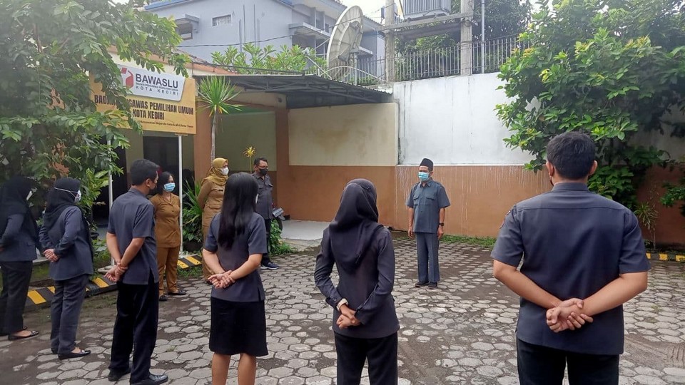 Ketua Bawaslu Kota Kediri selaku pembina apel menyampaikan, ditengah pandemi ini diharapkan seluruh staf tetap menjaga dan mengutamakan kesehatannya.