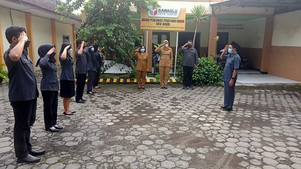 Kota Kediri, 31 Januari 2022. Bawaslu Kota Kediri melakukan Apel yang dimulai pukul 08.30 WIB di halaman Kantor Bawaslu Kota Kediri. Apel dilaksanakan oleh keluarga Bawaslu Kota Kediri, pembina apel dipimpin oleh Ketua Bawaslu Kota Kediri Mansur, kemudian komandan apel adalah saudara Rangga. Seluruh peserta mengikuti apel dengan khidmat. Diharapkan dengan adanya Apel pagi ini, seluruh jajaran pimpinan dan staf bisa bekerja dengan penuh semangat dan berkualitas.
