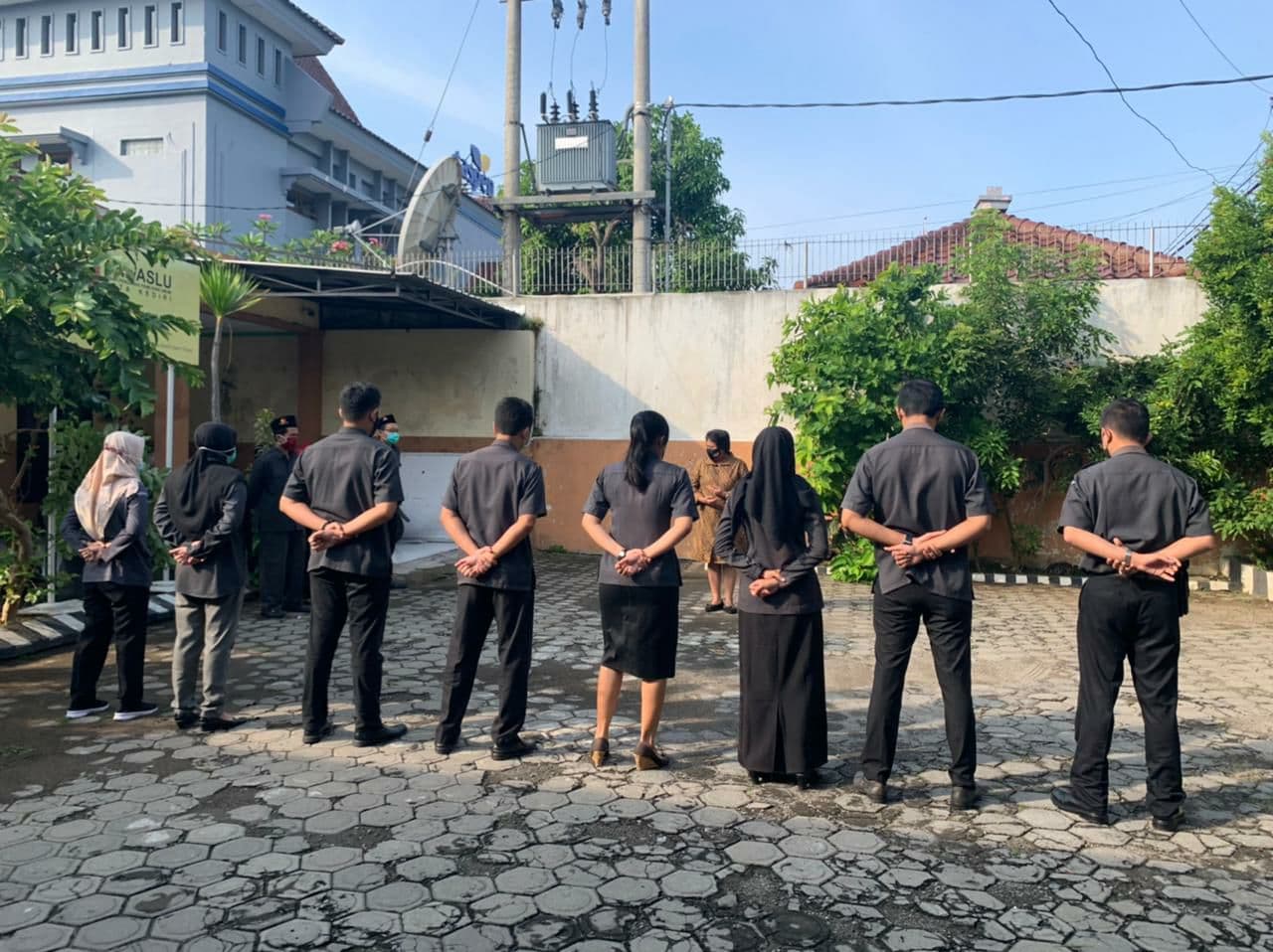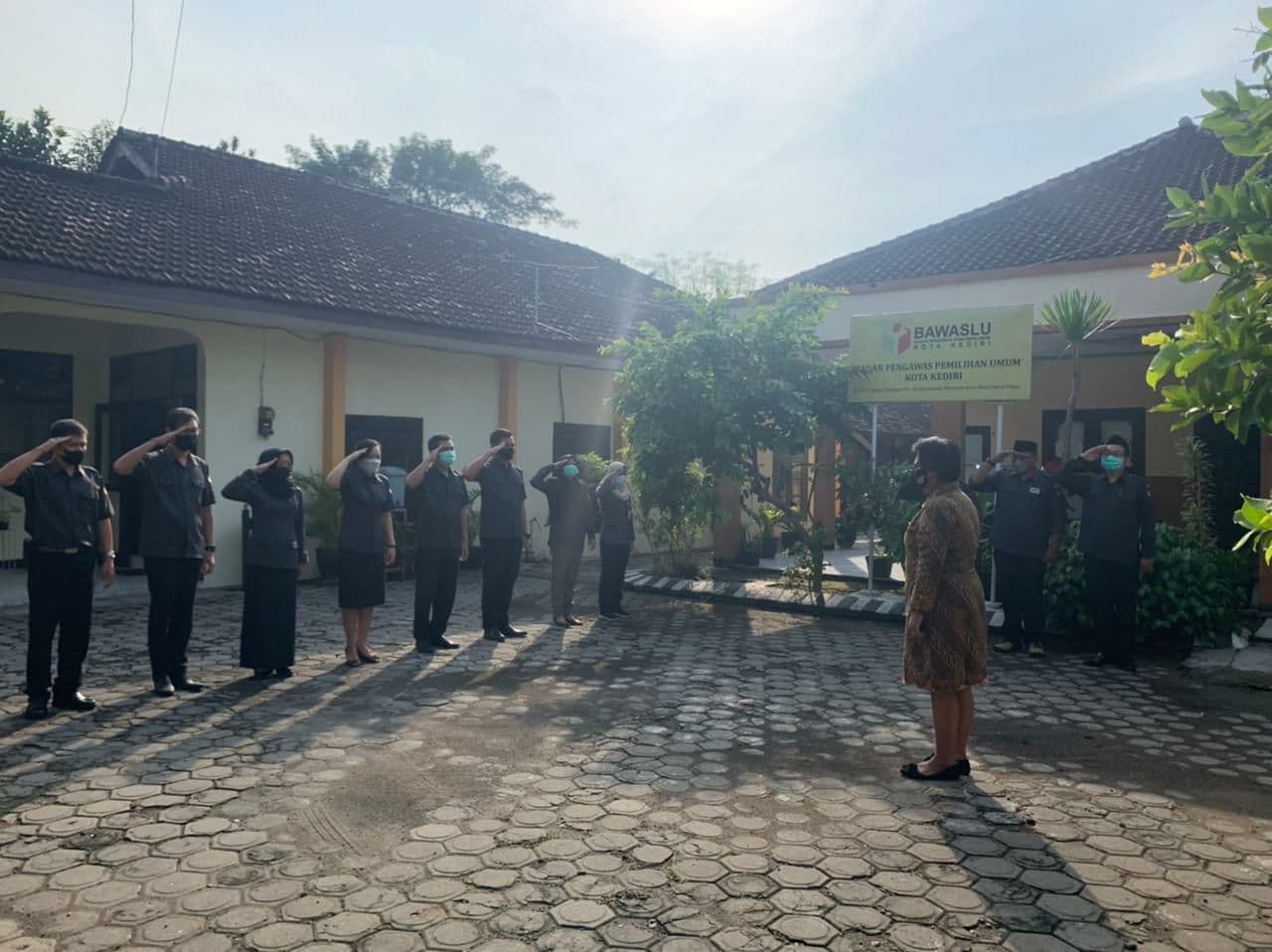 Kota Kediri, 21 Juni 2021. Bawaslu Kota Kediri melaksanakan apel rutin setiap hari Senin di halaman kantor Bawaslu Kota Kediri yang dimulai pukul 08.00 WIB. Apel kali ini langsung di hadiri Ibu Eka Rahmawati selaku Anggota Bawaslu Provinsi Jawa Timur Divisi Organisasi dan sekaligus menjadi pembina apel pada kali ini.