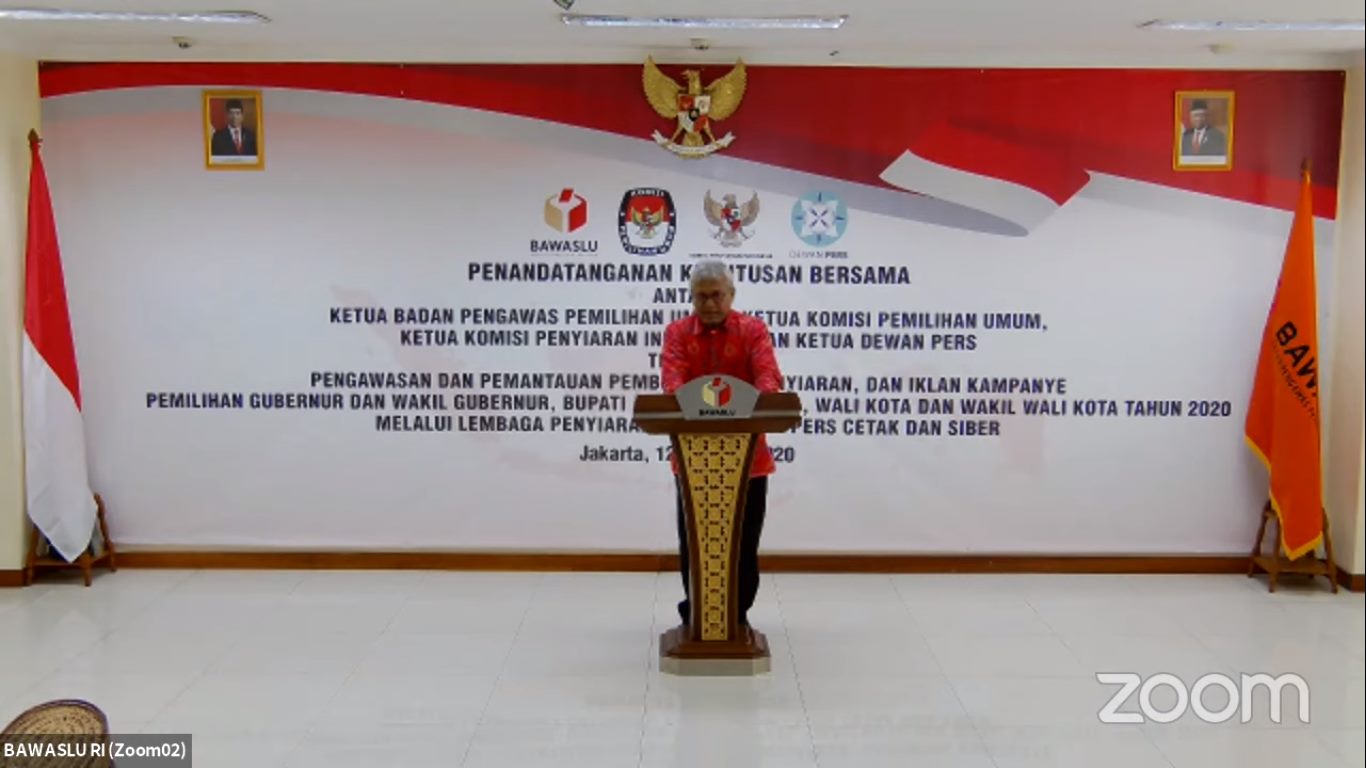 Hal ini disampaikan oleh Arif Budiman, Ketua KPU RI dalam sambutannya pada saat Penandatanganan Keputusan Bersama antara Bawaslu, KPU, KPI dan Dewan Pers di Jakarta, Rabu, 12 Agustus 2020 yang diikuti oleh Bawaslu Kota Kediri melalui Youtube.