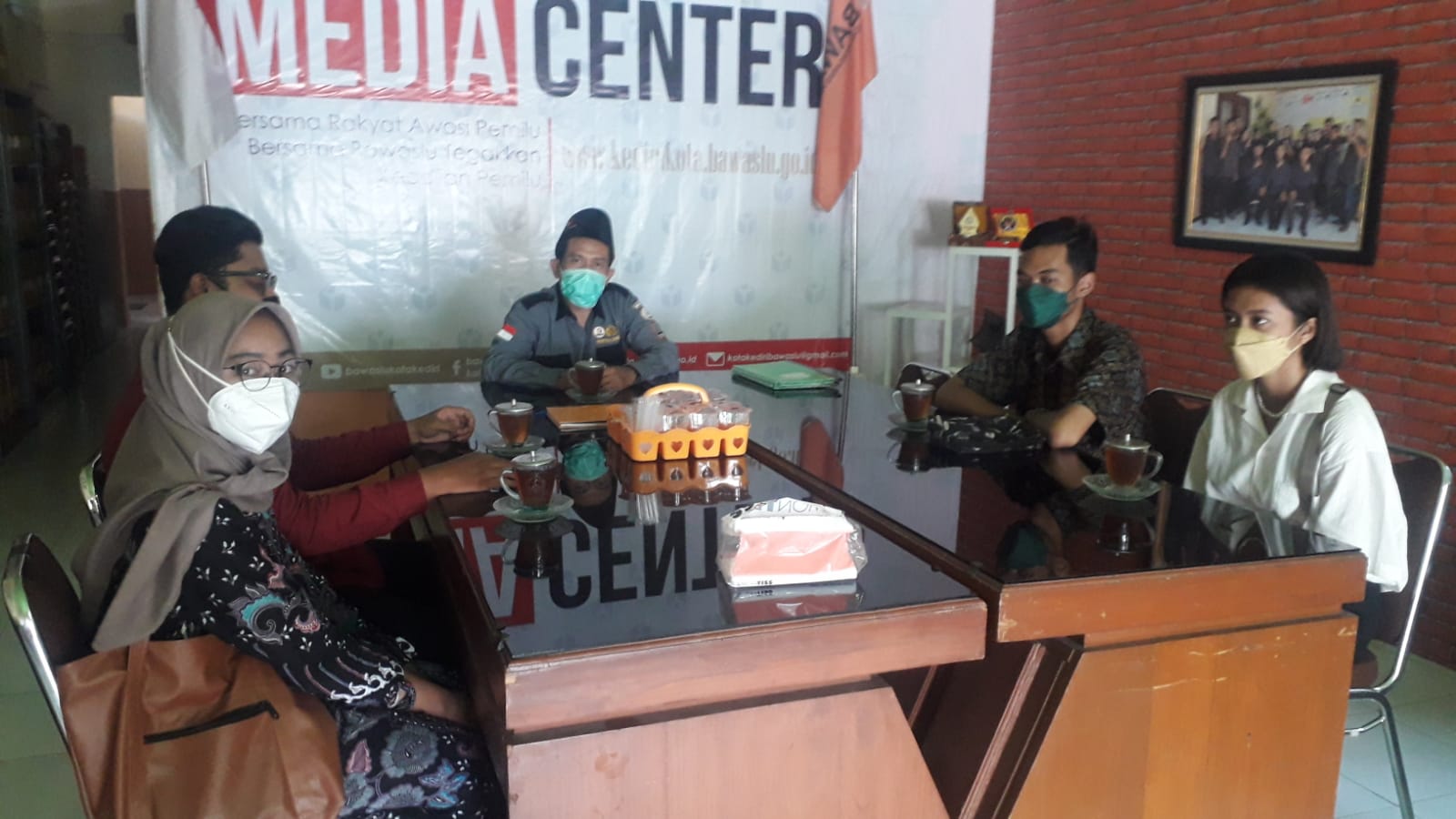Kota Kediri, 21 Desember 2021. Bawaslu Kota Kediri mendapat kunjungan dari Mahasiswa UNP Kota Kediri pukul 11.00 WIB di Kantor Bawaslu Kota Kediri untuk melakukan Audiensi BPPRM UNP Kota Kediri . Kunjungan ini dilakukan oleh Oki Yoga Pratama selaku Ketua BPPRM (Badan Pengawas Pemilihan Raya Mahasiswa ) UNP Kota Kediri beserta beberapa anggota yang disambut langsung oleh Mansur, selaku Ketua Bawaslu Kota Kediri. Tujuan dari kunjungan ini yakni melakukan audiensi pengurus BPPRM memohon meminta pembinaan demokrasi khususnya di bidang pengawasan yang diawali dengan melaksanakan Webinar di bulan Januari. Pembinaan ini disertai dengan diskursus tentang hukum Kepemiluan di Kantor Bawaslu Kota Kediri.