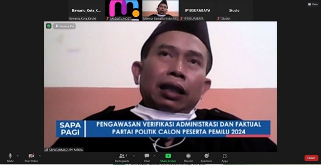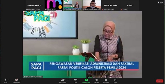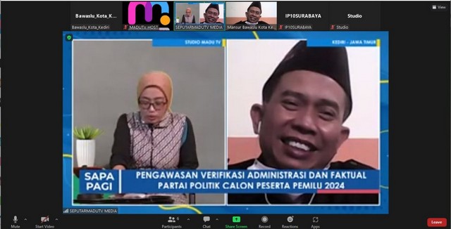 15 September 2022. Mansur, Ketua Bawaslu Kota Kediri menjadi Narasumber dalam Sapa Pagi oleh Madu TV. Kali ini mengangkat tema tentang "Pengawasan Verifikasi Administrasi dan Faktual Partai Politik Calon Peserta Pemilu 2024". Acara ini dilaksanakan secara streaming melalui chanel Madu TV dan melalui zoom meeting.