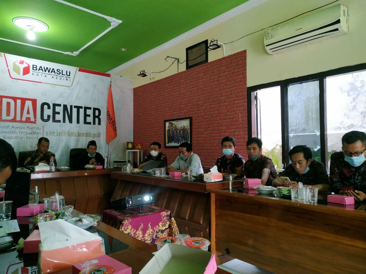 Kota Kediri, 14 Desember 2021. Bawaslu Kota Kediri kedatangan tamu dari Divisi PHL Bawaslu Kabupaten/Kota sekitar, antara lain Bawaslu Kabupaten Kediri, Bawaslu Kabupaten dan Kota Blitar, Bawaslu Kabupaten Tulungagung, Bawaslu Kabupaten Trenggalek dan Bawaslu Kabupaten Lamongan untuk melaksanakan kegiatan Monitoring dan Evaluasi Daftar Pemilih Berkelanjutan tahun 2021 yang diadakan oleh Bawaslu Provinsi Jawa Timur. Kegiatan ini turut menghadirkan Kepala Bagian Pengawasan dan Hubungan Antar Lembaga sekaligus Sub Koordinator Pengawasan Bawaslu Provinsi Jawa Timur. Kegiatan ini dilaksankan di Media Center Bawaslu Kota Kediri pukul 11.15 WIB yang dibuka langsung oleh Kepala Bagian Pengawasan dan Hubungan Antar Lembaga Bawaslu Provinsi Jawa Timur.