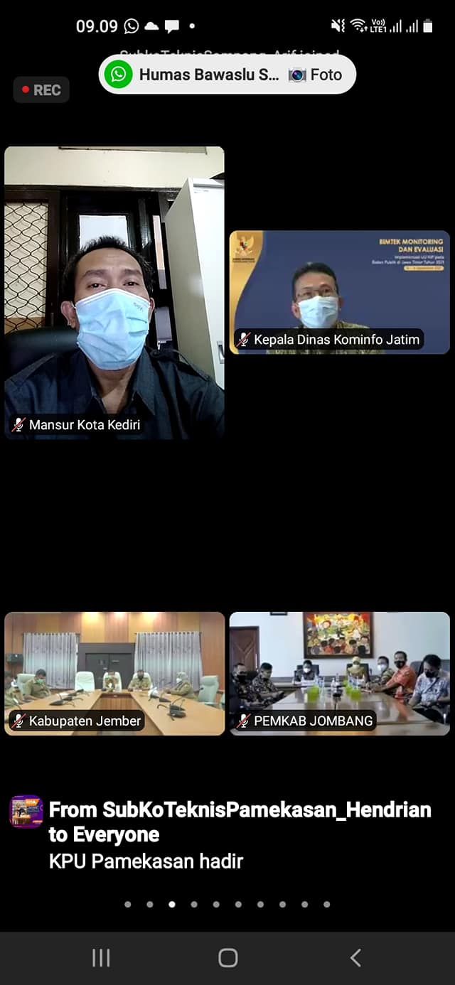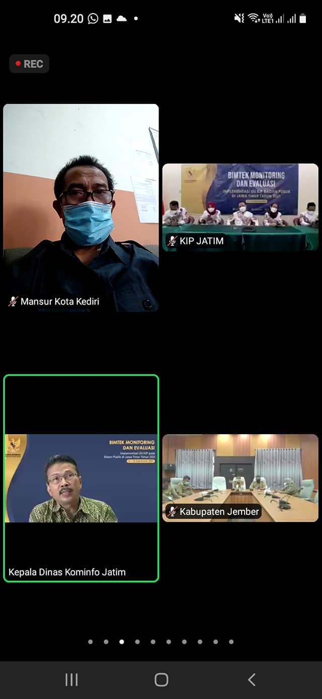 Kota Kediri. Ketua Bawaslu Kota Kediri, Mansur, mengikuti undangan Komisi Informasi Publik Provinsi Jawa Timur dalam acara Bimbingan Teknis Monitoring dan Evaluasi Pelayanan Informasi bagi Lembaga Publik se-Jawa Timur melalui aplikasi Zoom pada Selasa, 14 September 2021 yang juga dihadiri oleh Kepala Dinas Kominfo Jawa Timur, instansi-instansi di tingkat Kabupaten/ Kota hingga Kepala Desa/ Lurah se-Jawa Timur. Imaduddin, Ketua KIP Provinsi Jawa Timur dalam sambutannya menyampaikan, Bimtek ini perlu diadakan karena status Provinsi Jawa Timur dalam penyampaian informasi secara umum masih kategori cukup informatif sehingga perlu adanya peningkatan. Sementara itu Kepala Dinas Kominfo Provinsi Jawa Timur yang mewakili Gubernur Jawa Timur dalam sambutannya menyampaikan, publik harus dapat menerima informasi seluas-luasnya, khususnya dari lembaga-lembaga pelayanan, sehingga masyarakat mudah dalam mencukupi kebutuhan informasinya. Sementara itu Bawaslu Provinsi Jawa Timur sudah memperoleh predikat Lembaga Publik yang informatif di tahun 2020.Menurut Mansur, Bawaslu Kota Kediri sudah menyiapkan formulir permohonan informasi publik baik secara manual maupun online, untuk memberikan informasi kepada publik dengan baik, selain menampilkan informasi-informasi yang perlu diketahui oleh publik melalui laman PPID Bawaslu Kota Kediri.