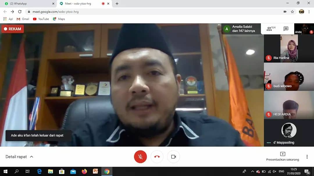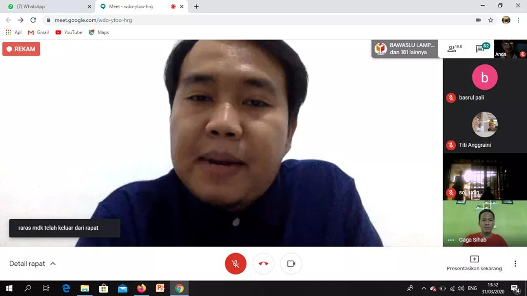 Meskipun tidak ikut menyelenggarakan Pilkada, Bawaslu Kota Kediri juga mengikuti diskusi ini baik Kordiv PHL maupun staf dengan semangat Work From Home (WFH) dan tetap stay at home.