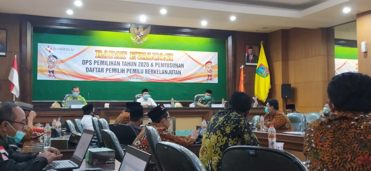 Jombang, 06 Oktober 2020. Koordinator Divisi PHL Bawaslu Kota Kediri bersama staf menghadiri undangan Rapat Evaluasi DPS Pemilihan tahun 2020 dan Penyusunan Daftar Pemilih Pemilu Berkelanjutan yang bertempat di Balai Pemerintah Kabupaten Jombang. Acara in dihadiri langsung oleh Aang Kunaifi selaku Anggota Bawaslu Provinsi Jawa Timur dan Filber Sidabutar selaku Kepala Bagian Pengawasan Bawaslu Provinsi Jawa Timur. Acara ini dimulai pada pukul 10.00 WIB yang dibuka langsung oleh Aang Kunaifi, beliau menyampaikan tentang penyusunan strategi pengawasan terkait daftar pemilih yang berada di lintas Kabupaten/Kota. Sedangkan berkaitan dengan tahapan Pikada sekarang sangat tidak mudah untuk melakukannya, karena masih banyak hal yang belum diatur di lapangan. Pembentukan posko pemenangan dapat diperbolehkan asal dengan catatan misal jumlah sebarannya dibatasi sesuai daerah masing-masing. Memastikan penanggung jawab masing-masing posko agar jika terdapat kejadian akan di tindak lanjuti oleh penanggung jawab posko. Tak lupa beliau juga mengingatkan tetap menjalankan protokol kesehatan selama Covid 19.