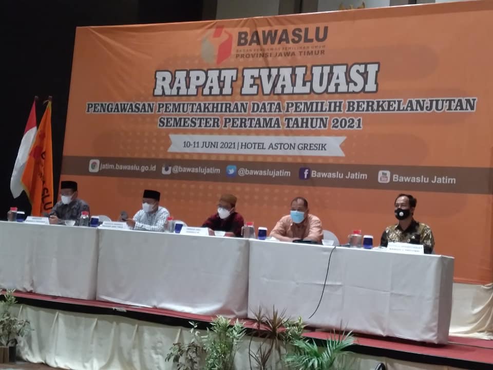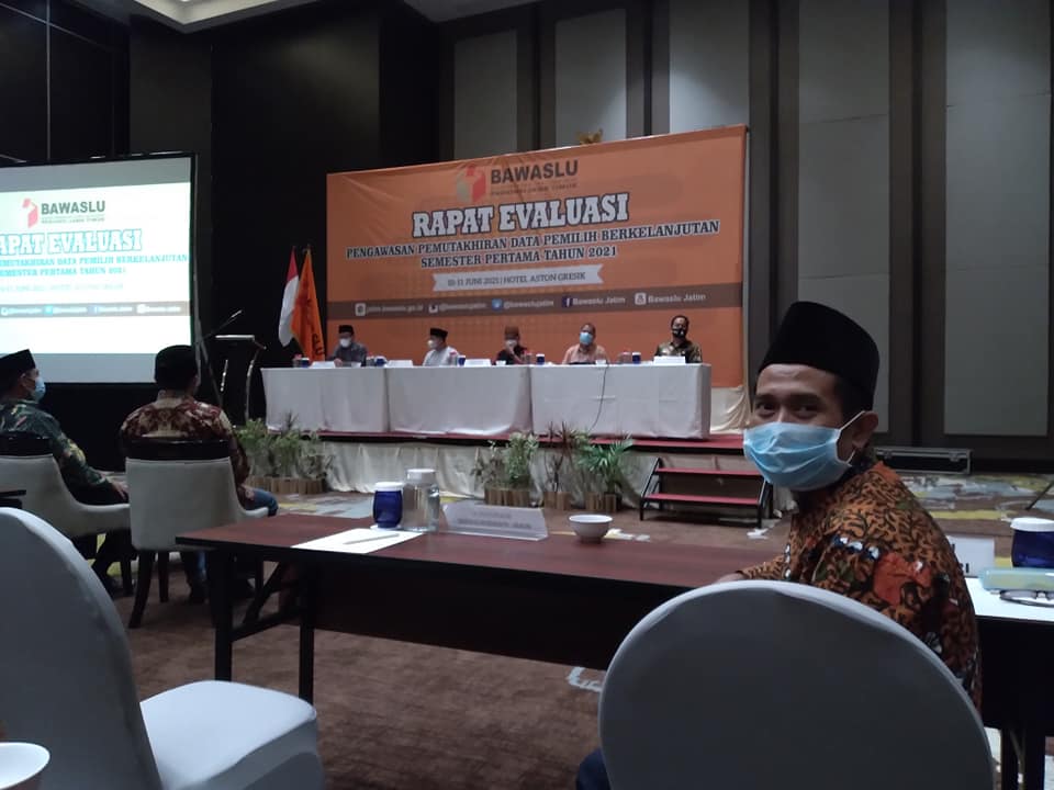 Gresik. Berdasarkan Surat Bawaslu RI No 13 Tahun 2021 tentang Pengawasan Pemutakhiran Data Pemilih Berkelanjutan yang dilakukan KPU Kabupaten/ Kota yang telah dilaksanakan oleh Bawaslu Kabupaten/ Kota se-Jawa Timur, Bawaslu Provinsi Jawa Timur melakukan Rapat Evaluasi Pengawasan Pemutakhiran Data Pemilih Berkelanjutan Semester I Tahun 2021 di Gresik yang dihadiri oleh Tenaga Ahli Bawaslu RI, Masykurudin Hafidz, atau yang dikenal dengan Cak Masykur, Pimpinan Bawaslu Jawa Timur, Aang Kunaifi, Totok Hariono, Ikhwanuddin Alfiyanto, Kasek Bawaslu Jawa Timur, Kordiv PHL Bawaslu Kota/ Kabupaten se Jatim pada 10 - 11 Juni 2021 di Hotel Aston Inn Gresik. Menurut Kordiv PHL Bawaslu Kota Kediri, Mansur, data-data hasil pengawasan pemutakhiran data pemilih berkelanjutan yang dilakukan oleh Bawaslu Kota Kediri telah siap disampaikan dalam forum, karena Bawaslu Kota Kediri telah melakukan pengawasan tersebut sejak akhir 2019 sampai sekarang. Dengan pengawasan melekat dapat diperoleh hasil DPB yang lebih akurat, sehingga pada Pemilu yang akan datang telah siap digunakan.
