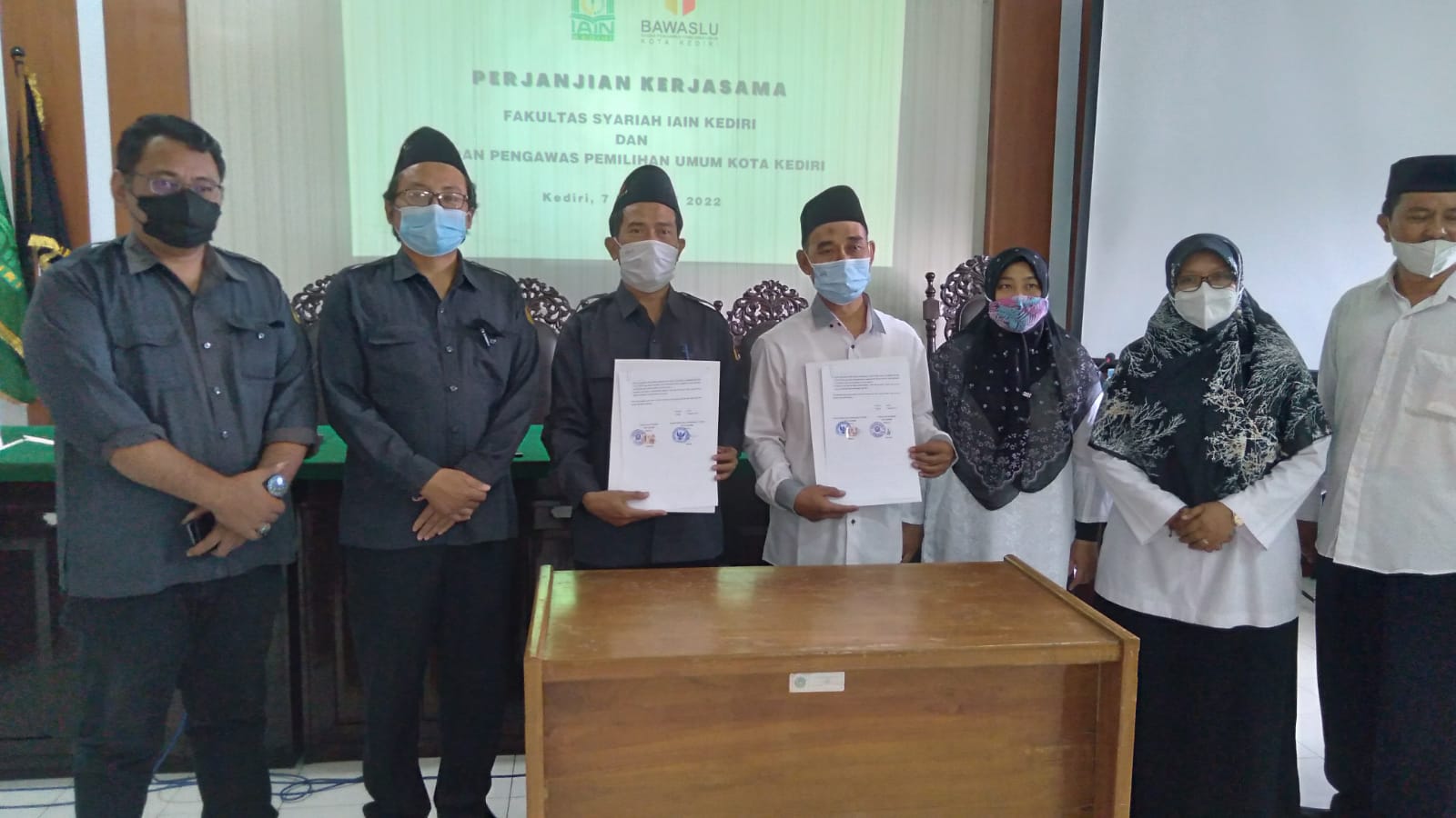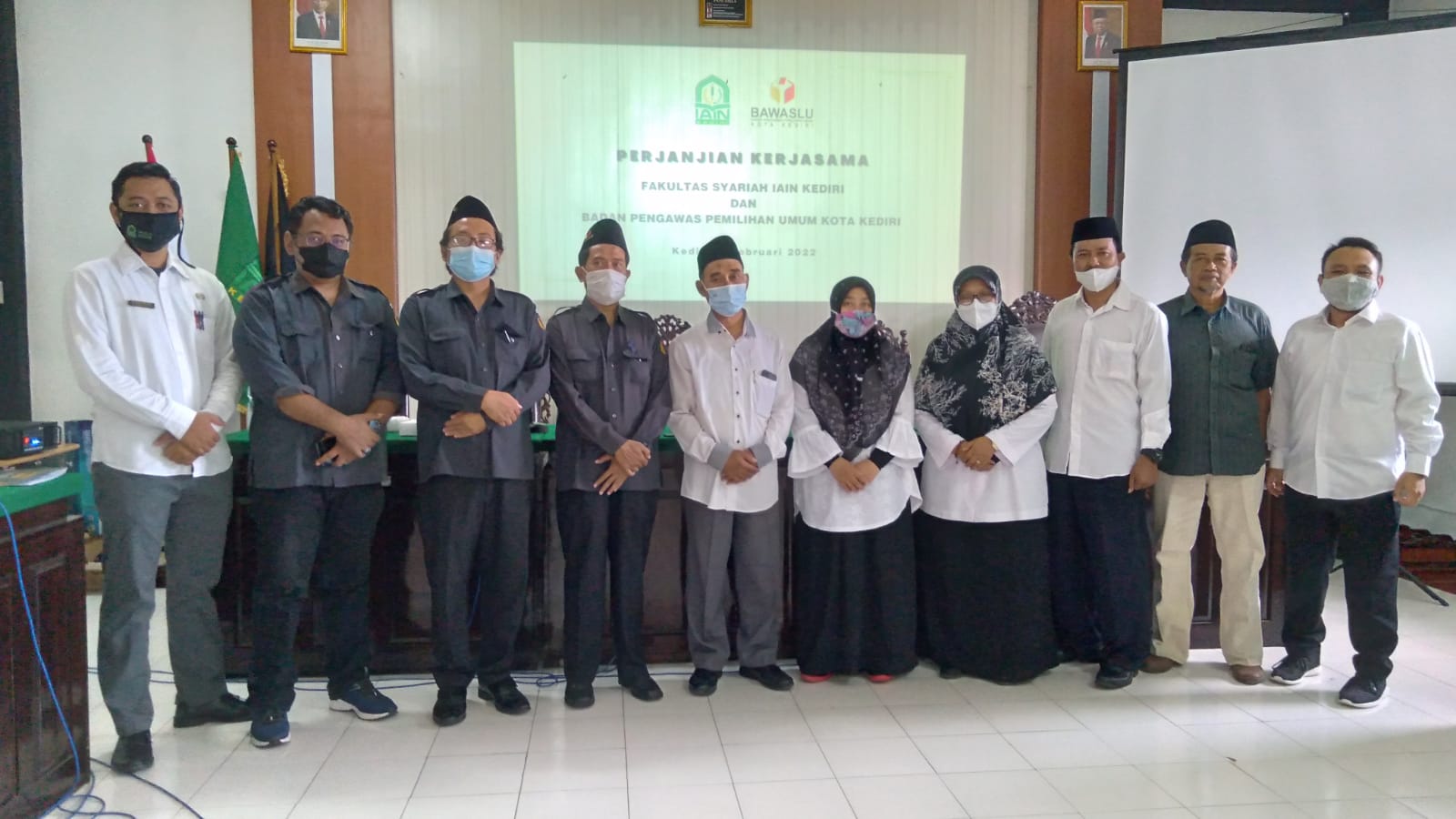 Kota Kediri, 07 Februari 2022. Bawaslu Kota Kediri menghadiri undangan FGD dalam rangka Perjanjian Kerjasama antara Fakultas Syariah IAIN Kediri dengan Bawaslu Kota Kediri yang dilaksanakan di ruang laboratorium Peradilan Fakultas Syariah lantai 2 IAIN Kediri pukul 09.00 WIB. Dalam kegiatan turut hadir Dekan Fakultas Syariah beserta seluruh jajaran dan Dosen Fakulras HTN IAIN Kediri.