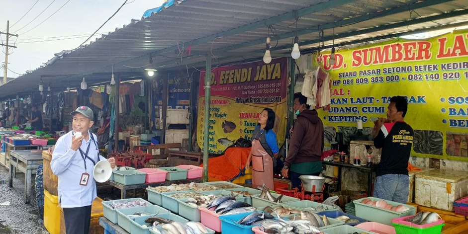 Selain pedagang, para pembeli dan juga penjaga pasar tidak luput menjadi sasaran patroli pengawasan Bawaslu Kota Kediri.