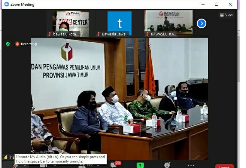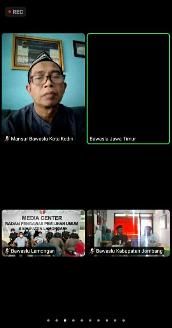 Kota Kediri, 17 Mei 2021. Bawaslu Kota Kediri mengikuti Halal Bi Halal yang diadakan oleh Bawaslu Provinsi Jawa Timur secara daring. Kegiatan ini dimulai pukul 13.00 WIB dan diikuti oleh Bawaslu Kabupaten/Kota Se-Jawa Timur. Muh. Ikhwanudin Alfianto selaku Anggota Bawaslu Provinsi Jawa Timur Divisi Penindakan Pelanggaran menyampaikan terkait kesejahteraan pegawai dilingkungan Bawaslu bahwa pegawai Non PNS belum memperoleh jaminan ketenagakerjaan. Tak lupa beliau juga mengucapkan Minal 'Aidin Wal Faizin ke 38 Kabupaten/Kota se-Jawa Timur. Tak hanya bapak Ikhwanudin yang memberikan sambutan namun, seluruh Pimpinan Bawaslu Provinsi Jawa Timur juga memberikan sambutan. Dan kegiatan ini diakhiri pada pukul 15.00 WIB.