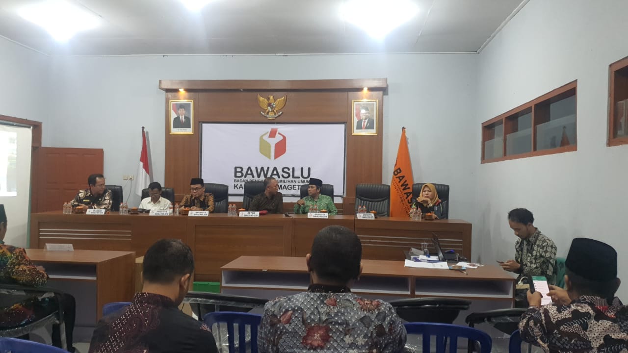 Magetan. Bawaslu Provinsi Jawa Timur menyelenggarakan Rapat Koordinasi Pembentukan Panwaslu Kelurahan/ Desa se-Jawa Timur di Kantor Bawaslu Kabupaten Magetan pada 12 - 13 Januari 2023. Terundang dalam acara ini Ketua dan Kordiv SDMO Bawaslu Kabupaten/ Kota se-Jawa Timur.