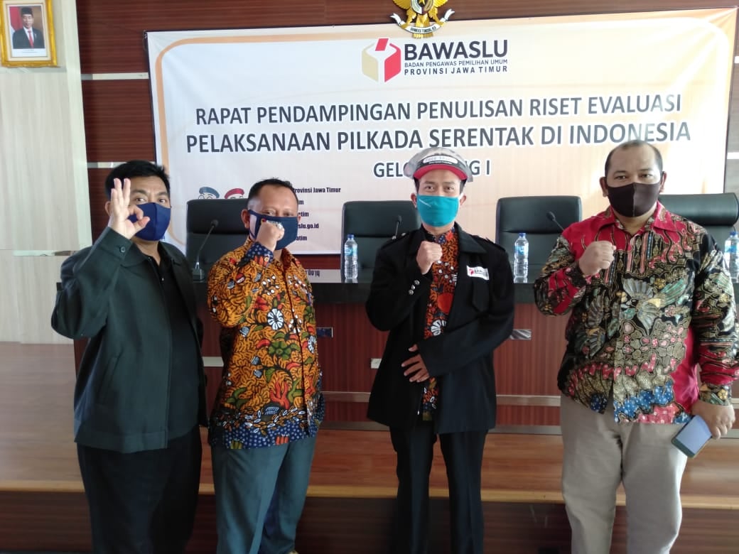 Kota Batu. 6 Agustus 2020 Kordiv PHL Bawaslu Kota Kediri mengikuti Rapat Pendampingan Pendalaman Penulisan Riset Evaluasi Pelaksanaaan Pilkada Serentak di Indonesia gelombang pertama yang diselenggarakan oleh Bawaslu Jawa Timur di Kantor Bawaslu Kota Batu, pada 5 - 6 Agustus 2020.Rapat yang dibuka oleh Anggota Bawaslu Jawa Timur, Aang Kunaifi ini menghadirkan konsultan penelitian dari AVE Media yang mendampingi Bawaslu Kabupaten/ Kota se-Jawa Timur dalam melakukan penelitian. Gelombang pertama rapat ini diikuti oleh 19 Bawaslu Kabupaten/ Kota se-Jawa Timur. Selain dilaksanakan rapat di Kantor Bawaslu Kota Batu, rapat ini pada hari ke-2 dilaksanakan di Gedung Balai Kota Among Tani Kota Batu.Judul yang diajukan oleh Bawaslu Kota Kediri masuk nominasi untuk diajukan ke Bawaslu RI. Yang dalam hal ini dikerjakan oleh 4 Bawaslu Kabupaten/ Kota, yaitu Kota Kediri, Kabupaten Blitar, Kabupaten Nganjuk dan Kabupaten Tuban.Mansur, Ketua Bawaslu Kota Kediri sekaligus Kordiv PHL tidak menduga judul penelitian yang diajukan masuk nominasi. "Tetapi judul yang kami ajukan memang menarik, dan ada kejadian khusus pada saat Pilkada 2018 yang terjadi di TPS 20 Kelurahan Ngronggo. Semoga ini bermanfaat bagi pelaksanaan Pemilu ke depannya" ujar Mansur.