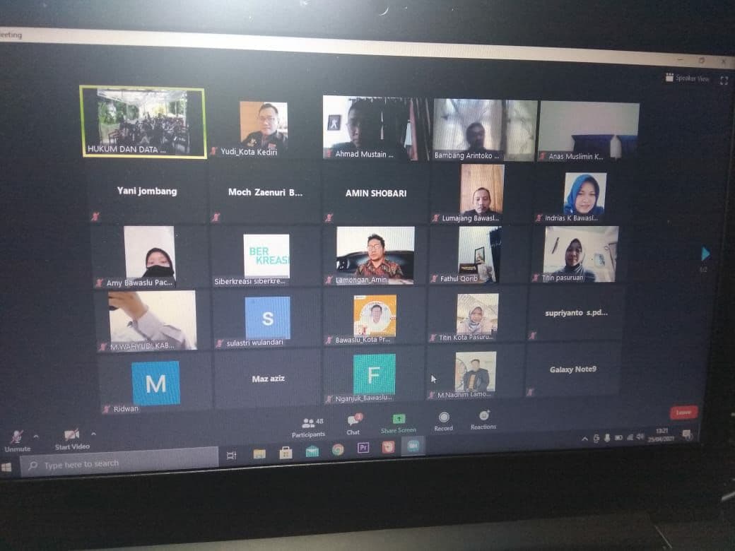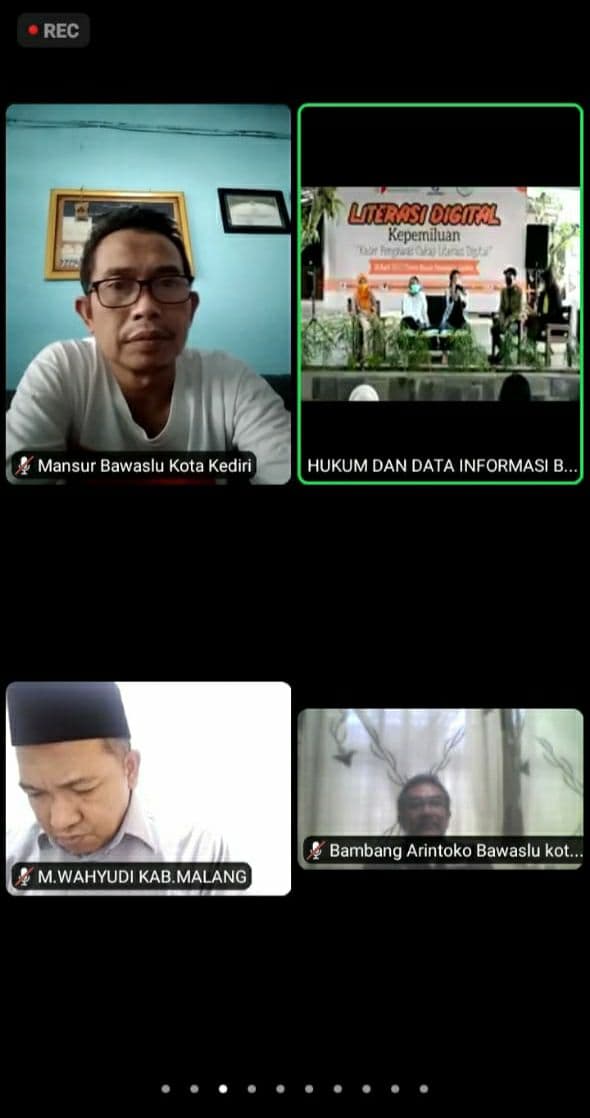 Kota Kediri, 25 April 2021. Bawaslu Kota Kediri mengikuti kegiatan Literasi Digital Kepemiluan yang diadakan oleh Bawaslu Provinsi Jawa Timur di Taman Botani Sukorambi Jember secara virtual pukul 12.00 WIB.