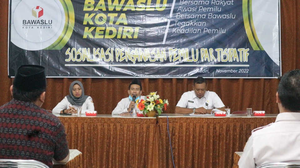 Bawaslu Kota Kediri melaksanakan Sosialisasi Pengawasan Partisipatif Pemilu kepada masyarakat Kota Kediri yang tersebar dalam tiga Kecamatan yang dimulai pada tanggal 23 November 2022. Untuk peserta yang hadir dalam giat ini berasal dari Kepala Kelurahan dan tokoh masyarakat terundang yang dibuka secara resmi oleh Ketua Bawaslu Kota Kediri, Mansur, ST sekaligus penyampaian tugas Bawaslu.