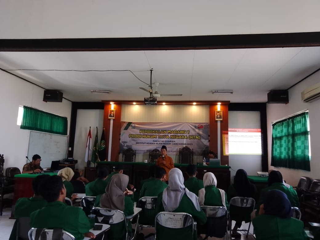 Kota Kediri, 15 Juli 2023. Mansur, Ketua Bawaslu Kota Kediri menjadi narasumber dalam Pembekalan Magang IAIN Kediri Prodi HTN yang dilaksanakan di Laboratorium Peradilan Semu Fakultas Syariah IAIN Kediri pukul 09.00 WIB. Kegiatan ini dilaksanakan oleh Fakultas Syariah IAIN Kediri.