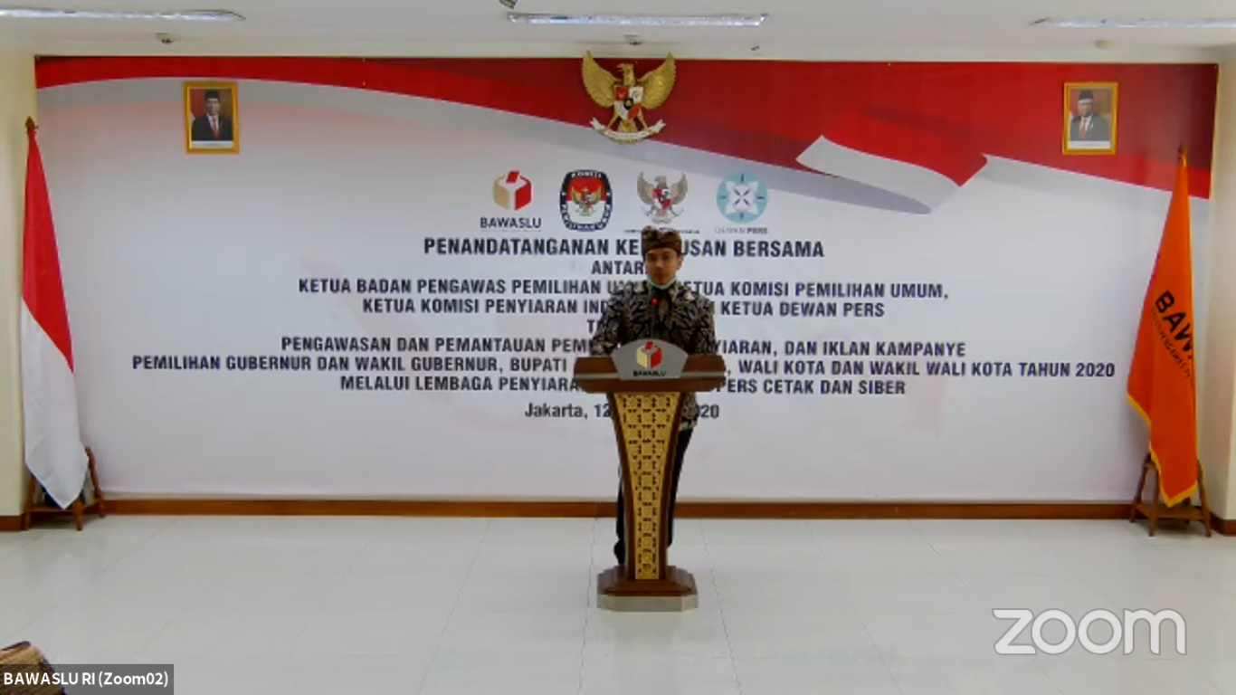 Kota Kediri. Bawaslu melakukan penandatanganan Keputusan Bersama dengan KPU, KPI, dan Dewan Pers di Lantai 4 Gedung Bawaslu RI, Rabu (12/8/2020). Keputusan Bersama ini berisi tentang Pengawasan dan Pemantauan Pemberitaan, Penyiaran, dan Kampanye. Bawaslu Kota Kediri mengikuti dari Youtube. Agung Suprio, Ketua Komisi Penyiaran Indonesia ikut menandatangani Keputusan Bersama ini.