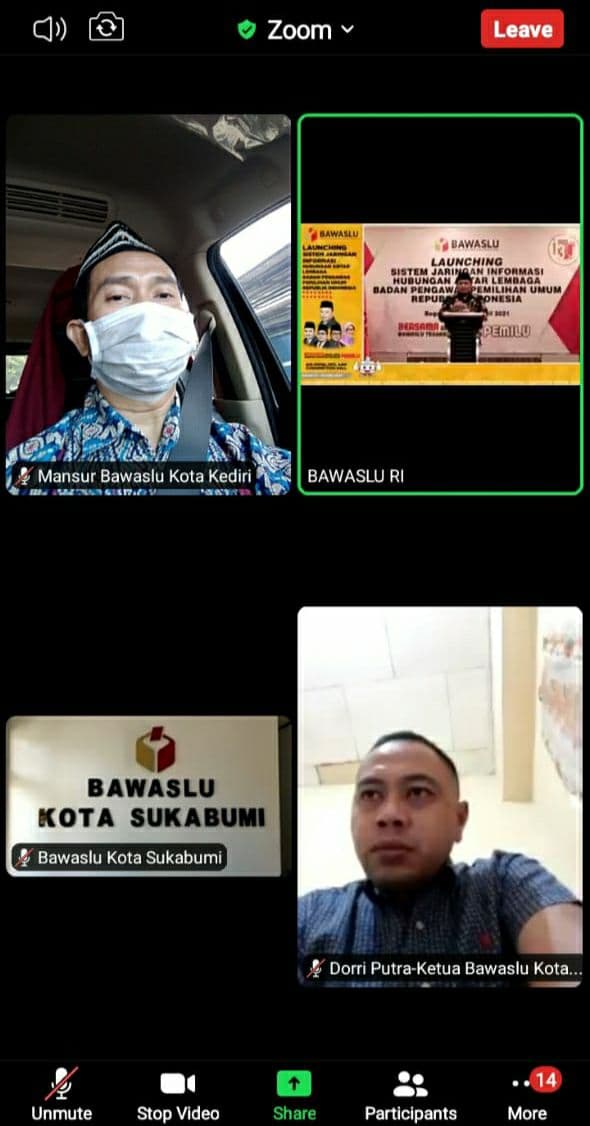 Kota Kediri, 27 April 2021. Koordinator Divisi Pengawasan Hubungan Masyarakat dan Hubungan Antar Lembaga Bawaslu Kota Kediri, Mansur mengikuti Launching Sistem Informasi Jaringan Hubungan Antar Lembaga Bawaslu yang diadakan oleh Bawaslu RI di Big Hotel Intl and Convention Hall Bogor pukul 10.00 WIB. Kegiatan ini diikuti oleh seluruh Bawaslu Provinsi dan Kabupaten/Kota Se-Indonesia.