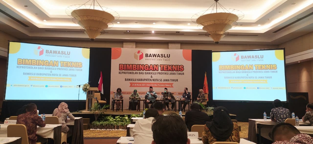 Kordiv Pengawasan, Hubungan Masyarakat dan Hubungan Antar Lembaga Bawaslu Kota Kediri, Mansur dan staff menghadiri Bimtek Keprotokolan bagi Bawaslu Provinsi Jawa Timur dan Bawaslu Kabupaten/ Kota se-Jawa Timur di Hotel Santika, Kota Malang pada 29 - 30 Maret 2021.Acara yang dihadiri 4 pimpinan Bawaslu Jawa Timur dan Kepala Sekretariat ini dibuka oleh Ketua Bawaslu Jawa Timur, Muhammad Amin. Dalam rangkaian acara pembukaan, Totok Hariono sempat menceritakan saat beliau menjadi wartawan dan sering menerobos Keprotokolan, sehingga sering mengalami masalah dengan itu.Menurut Mansur, Lembaga Negara harus Mengikuti Protokoler. Oleh karena itu, kita harus belajar protokol yang benar sesuai UU 9 Tahun 2010.