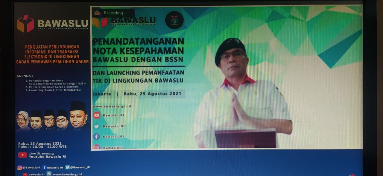 Ketua Bawaslu RI, Bapak Abhan dalam sambutannya menyampaikan pemanfaatan teknologi dalam kondisi pandemi yang sedang berlangsung sangatlah penting baik dari segi politik, sosial maupun budaya yang bertujuan untuk memperluas informasi yang terdapat didalamnya. Maka dalam upaya meningkatkan transformasi menuju era digitalisasi dan keamaan siber serta perlindungan terhadap informasi dan transaksi elektronik di lingkungan Bawaslu maka mengadakan kerja sama dengan BSSN yang mencakup pemanfaatan sertifikat elektronik, penguatan sistim keamanan, peningkatan SDM serta persebaran informasi. Dengan adanya Nota Kesepahaman ini diharapkan dapat mewujudkan efektifitas kerja, pola kerja yang terpadu, terarah dan berkesinambungan dalam proses perlindungan informasi dan transaksi elektronik.