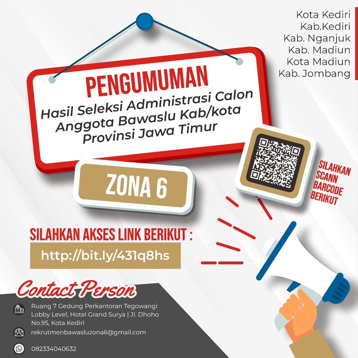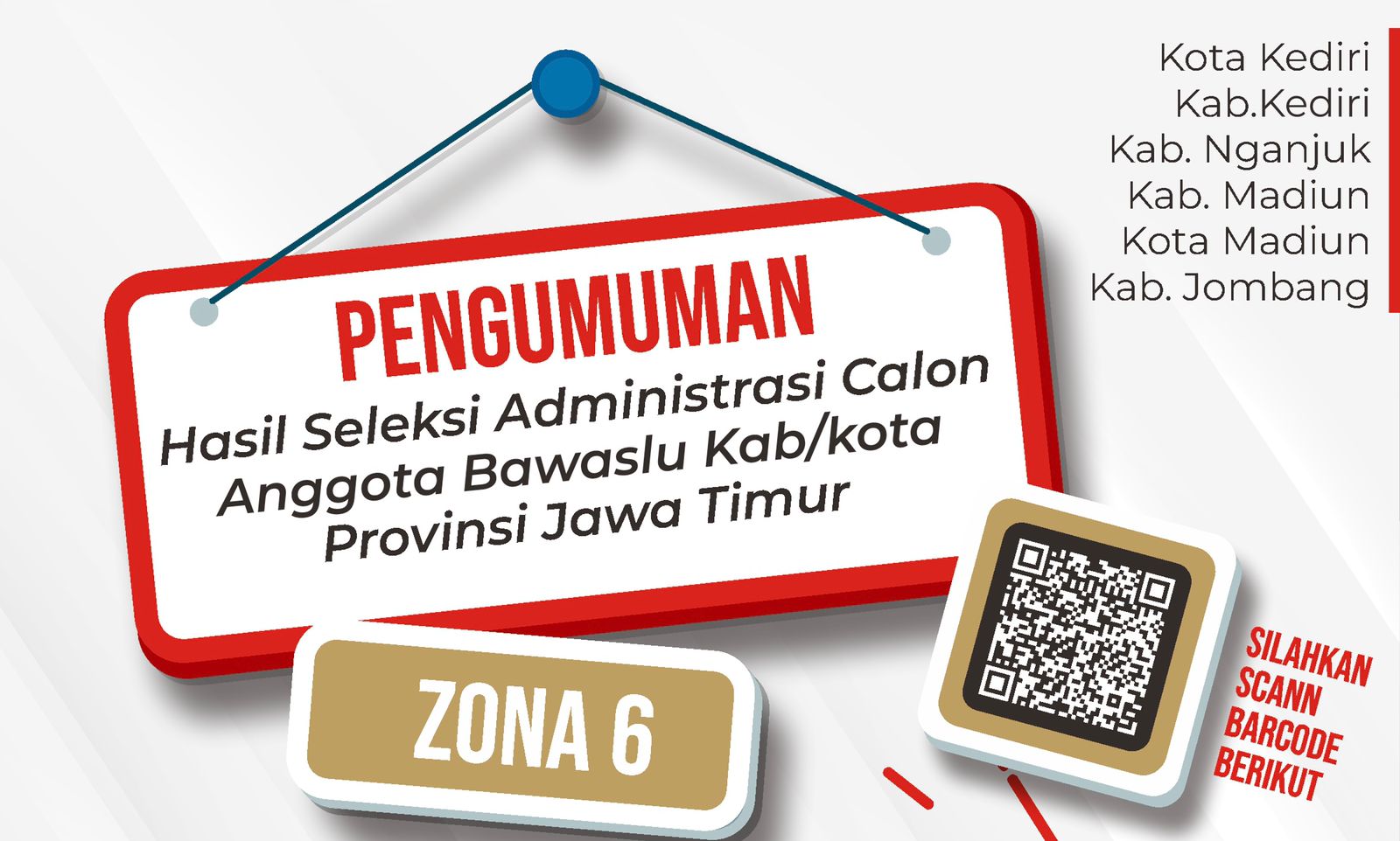 PENGUMUMAN HASIL PENELITIAN BERKAS ADMINISTRASI CALON ANGGOTA BAWASLU KABUPATEN/KOTA PROVINSI JAWA TIMUR ZONA 6 TAHUN 2023