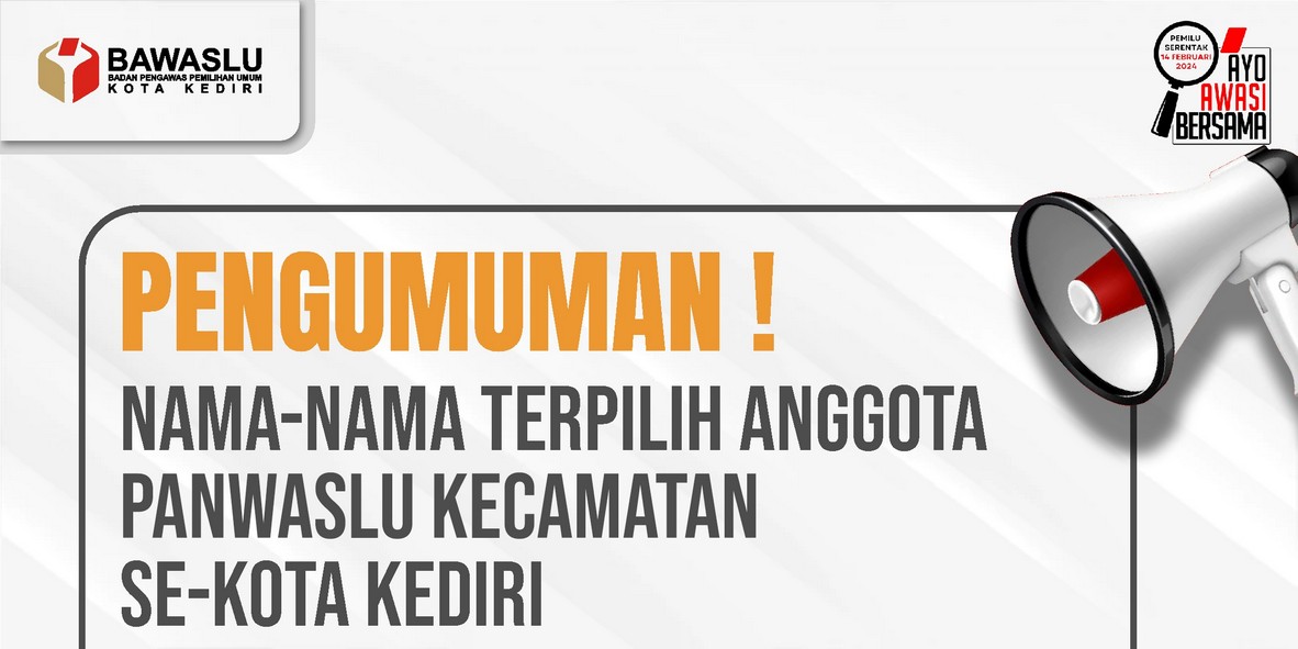 PENGUMUMAN NAMA-NAMA TERPILIH ANGGOTA PANWASLU KECAMATAN SE-KOTA KEDIRI DALAM PEMILU SERENTAK TAHUN 2024