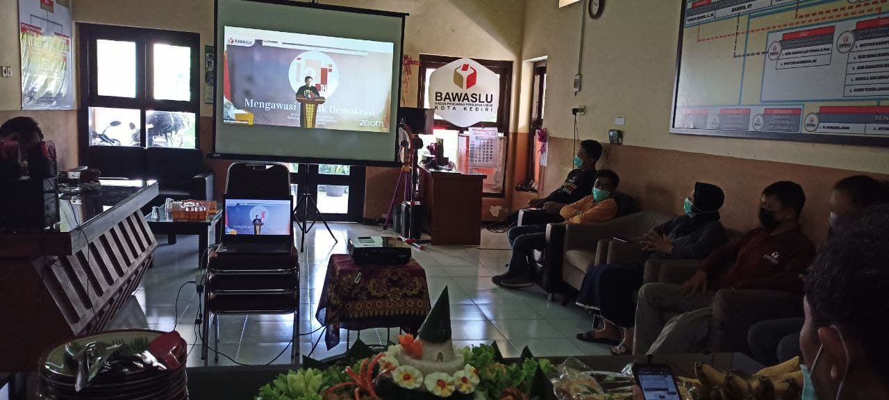 Kota Kediri, 09 April 2021. Bawaslu Kota Kediri mengikuti Zoom perayaan HUT ke 13 Bawaslu di kantor Bawaslu Kota Kediri yang diadakan oleh Bawaslu RI pukul 09.00 WIB. Kegiatan ini diikuti oleh Ketua beserta anggota Bawaslu Kota Kediri sekaligus seluruh staf Bawaslu Kota Kediri. Ketua Bawaslu RI Bapak Abhan menyampaikan tujuan dari perayaan ulang tahun yakni mengingat bagaimanan perjalanan Bawaslu selama 13 tahun ini tepatnya pada 9 April tahun 2008 awal berdiri menjadi Bawaslu pada tahun 2008 pada periode pertama. Kemudian periode ke dua UU No. 15 tahun 2011 terbentuk Bawaslu pada tingkat Provinsi yang selanjutnya berubah kembali dalam UU No. 7 tahun 2017 terbentuk Bawaslu Kabupaten/Kota. Dengan perjalanan panjang tersebut tidak lepas dari catatan maupun kritik dari masyarakat. Kerja Bawaslu juga tidak sendiri tentu berkat dari sinergitas dengan lembaga lain.