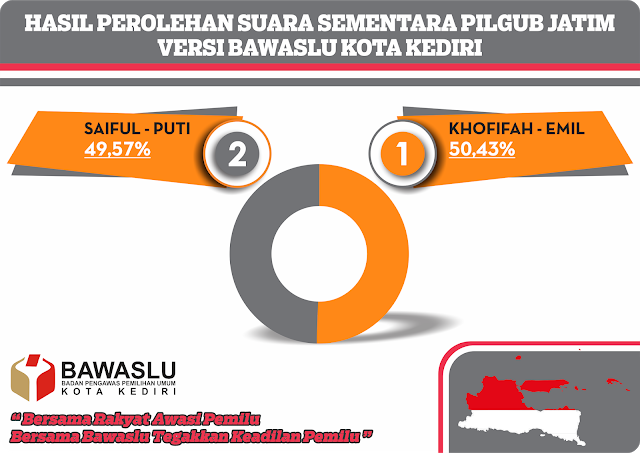 PEROLOHEAN SUARA SEMENTARA PILGUB DAN PILWALI VERSI BAWASLU KOTA KEDIRI humas | Kamis, April 11, 2019 - 11:50 Tag PENGUMUMAN Share Berita Terkini humas Senin, Januari 5, 2026 - 11:39 Tingkatkan Kinerja Pasca WFA, Bawaslu Kota Kediri Tekankan Integritas dan Efisiensi humas Senin, Desember 22, 2025 - 14:14 Bawaslu Kota Kediri Susun Rencana Tindak Lanjut Kader Pengawas Partisipatif humas Sabtu, Desember 20, 2025 - 19:58 Bawaslu Provinsi Jawa Timur Raih Penghargaan Terbaik 1 Konten Terpopuler se-Indonesia Lihat Lainnya