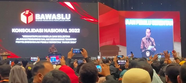 Jakarta, 17 Desember 2022. Ketua beserta Anggota Bawaslu Kota Kediri menghadiri Konsolidasi Nasional Bawaslu tahun 2022 yang dilaksanakan di Hotel Bidakara Jakarta. Acara ini dihadiri oleh Presiden RI, Ir. Joko Widodo, pimpinan Bawaslu RI, Pimpinan Bawaslu Provinsi se-Indonesia danBawaslu Kabupaten/Kota Se-Indonesia