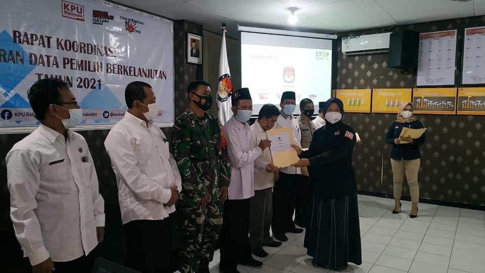 Kota Kediri. Bawaslu Kota Kediri menghadiri Rapat Koordinasi Daftar Pemilih Berkelanjutan yang diselenggarakan oleh KPU Kota Kediri pada 31 Maret 2021 di Ruang RPP KPU Kota Kediri. Rapat ini juga dihadiri oleh perwakilan Dinas Kependudukan dan Pencatatan Sipil, perwakilan Polres, Kodim, Kemenag dan Kepala KUA 3 Kecamatan. Hasil pemutakhiran daftar pemilih berkelanjutan kali ini merupakan hasil dari koordinasi dengan beberapa instansi terundang di atas. Adapun jumlah DPB Maret ini 203162 pemilih.