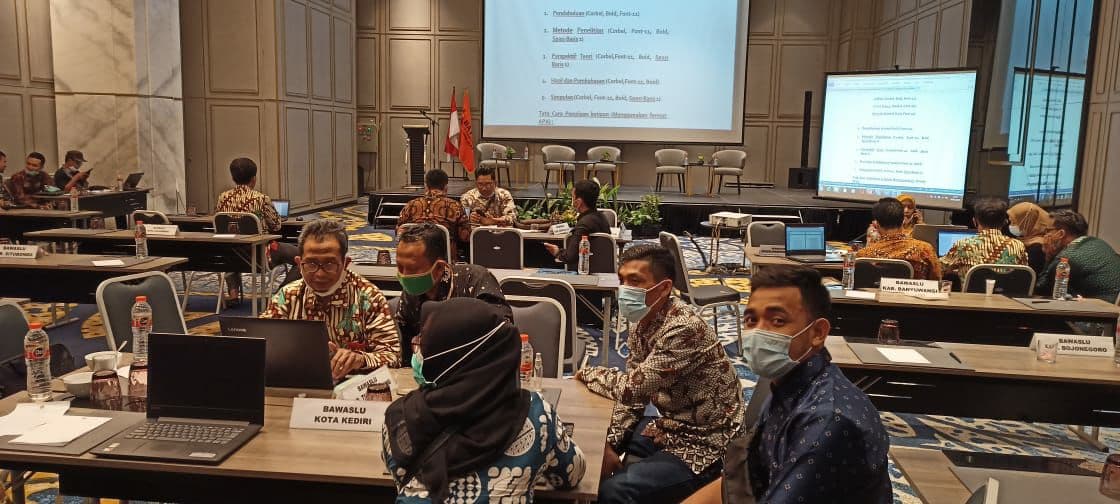 Surabaya, 19 November 2020. Koordinator Divisi PHL beserta Staf Bawaslu Kota Kediri menghadiri undangan Rapat Koordinasi Persiapan Finalisasi Penulisan Buku Riset dan Kajian Evaluasi Pengawasan Pilkada tahun 2015-2020 yang diadakan oleh Bawaslu Provinsi Jawa Timur. Kegiatan ini dihadiri oleh Bawaslu 38 Kabupaten/Kota se-Jawa Timur. Kegiatan ini dibuka oleh Sapni Syahril, S.IP., M.Si. selaku Kepala Sekretariat Bawaslu Provinsi Jawa Timur pukul 16.00 WIB.
