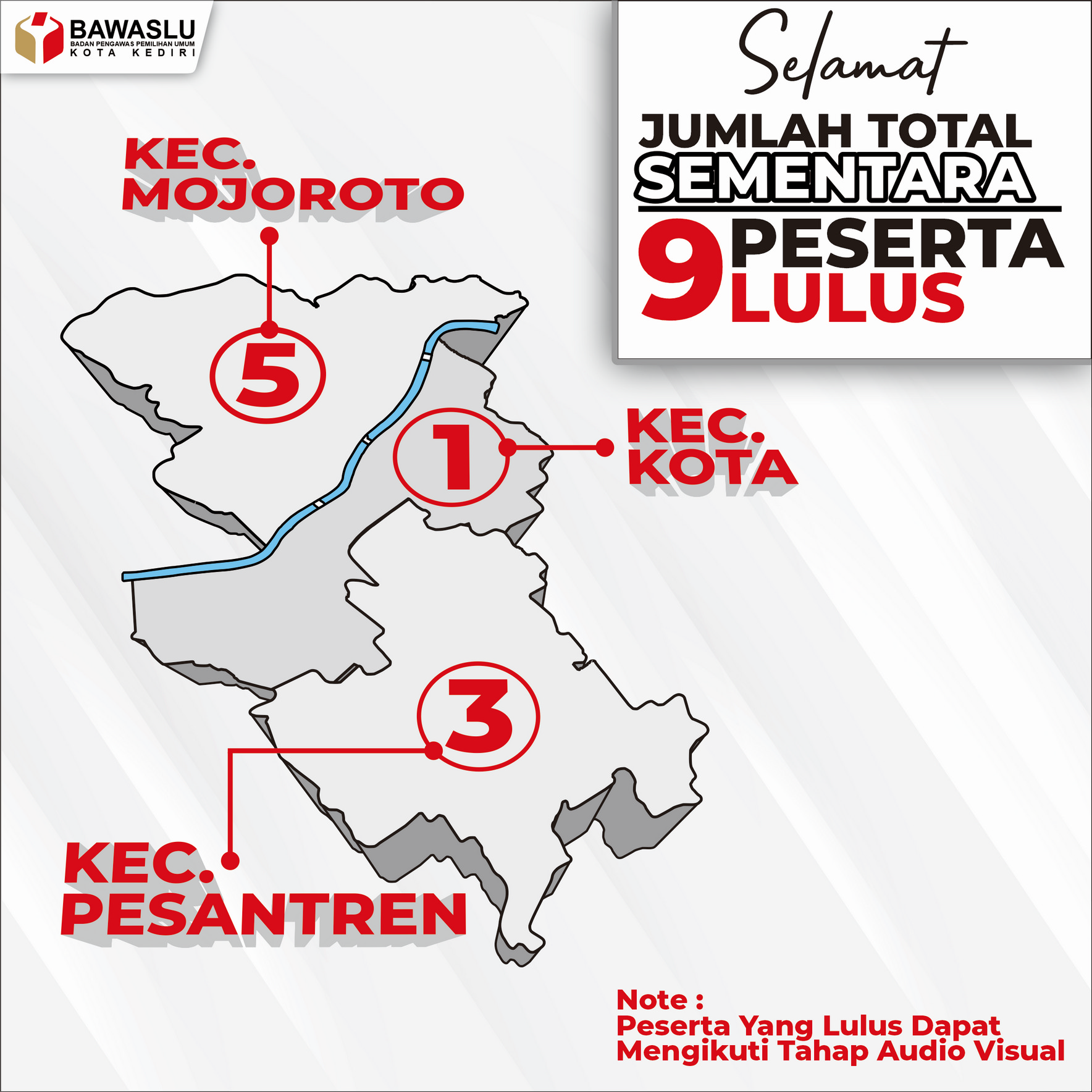 SELAMAT KEPADA PESERTA LULUS TAHAP AUDIO VISUAL DARING SKPP DARI KOTA KEDIRI humas | Selasa, Juni 2, 2020 - 10:39 Tag PENGUMUMAN Share Berita Terkini humas Rabu, April 22, 2026 - 12:36 Bawaslu Kota Kediri Lakukan Uji Petik di Ngadirejo: Temukan Pemilih TMS Meninggal Dunia dan Pemilih Baru humas Kamis, April 16, 2026 - 12:55 Kawal Pemutakhiran Data Pemilih, Bawaslu Kota Kediri Koordinasi ke Kelurahan Bandar Kidul humas Senin, April 13, 2026 - 08:34 Persiapan Supervisi Provinsi dan Penguatan Internal, Bawaslu Kota Kediri Gelar Apel Pagi Lihat Lainnya