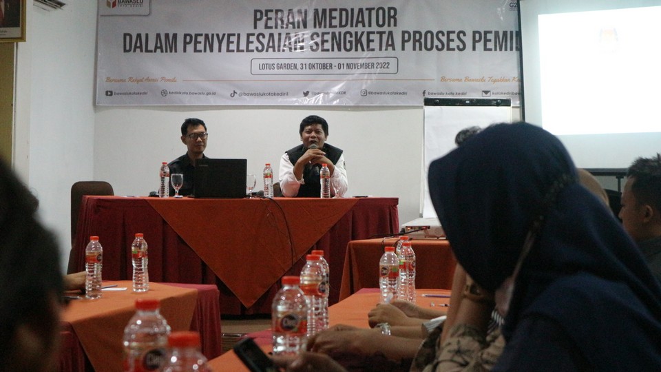 Kota Kediri. Pada tanggal 31 Oktober sampai 01 November 2022 Bawaslu Kota Kediri melaksanakan giat Peran Mediator Penyelesaian Sengketa Proses Pemilu 2024 di Lotus Garden. Kegiatan ini diikuti oleh seluruh Anggota Panwascam sekaligus Sekretariat Panwascam se-Kota Kediri yang diperbantukan oleh Kecamatan masing-masing.