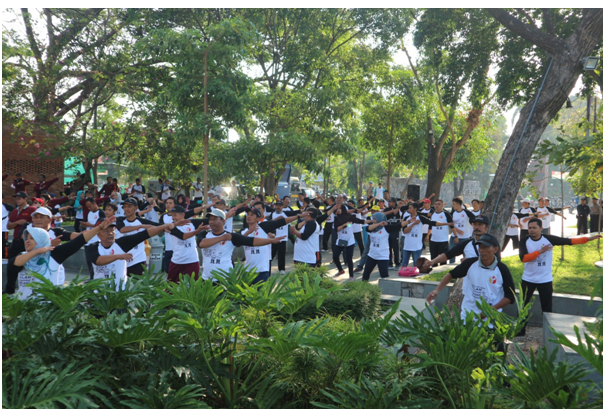Kegiatan Senam Awas "Deklarasi Kalah Terhormat Menang Bermartabat" yang digelar di area taman sekartaji kota kediri.