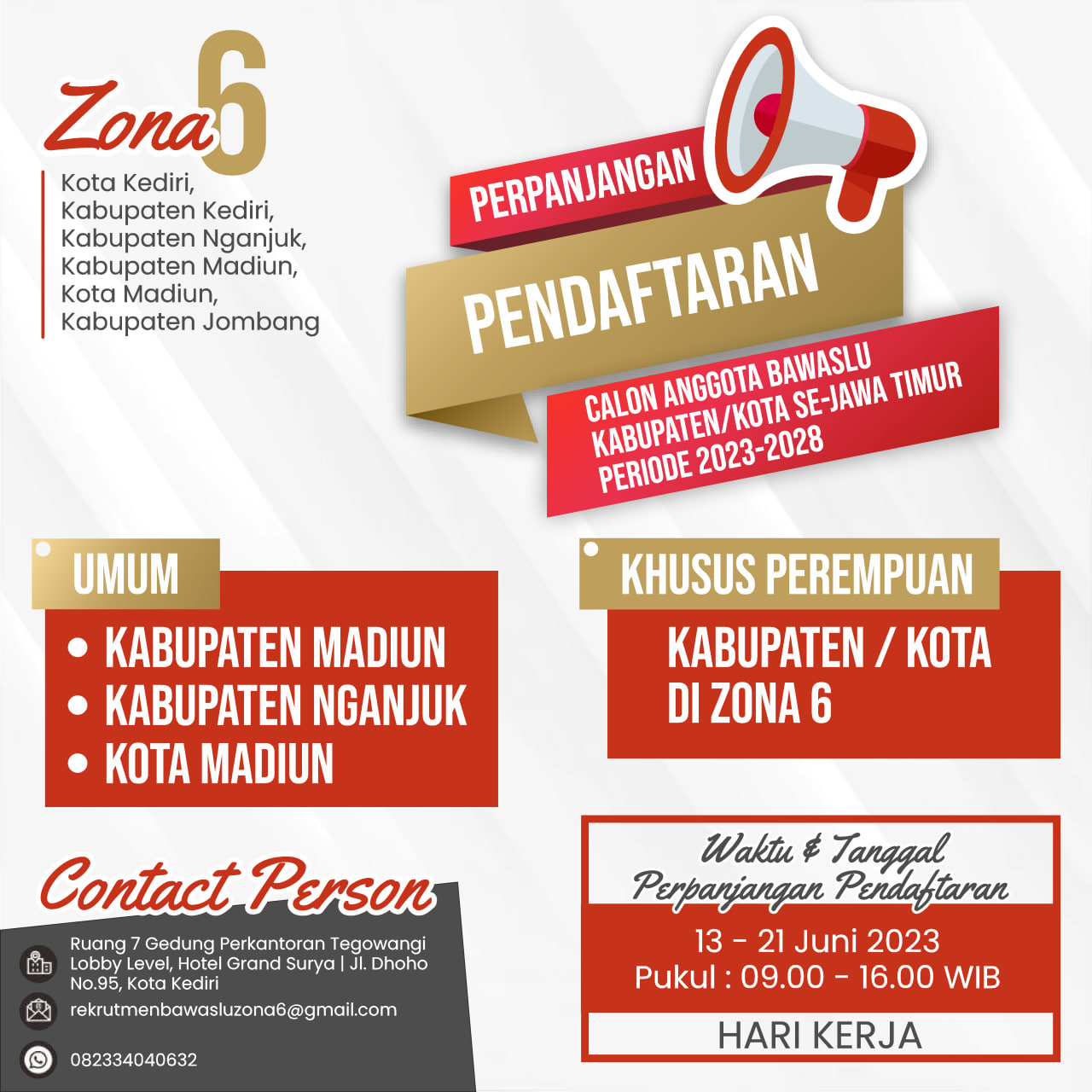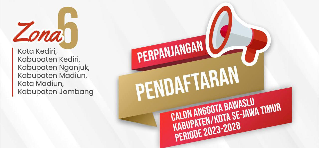 SIARAN PERS PERPANJANGAN PENDAFTARAN CALON ANGGOTA BAWASLU KABUPATEN/KOTA PROVINSI JAWA TIMUR ZONA 6 MASA JABATAN 2023-2028