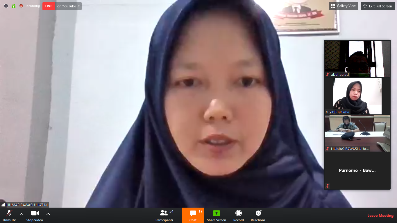 Kota Kediri. Bawaslu Kota Kediri beserta peserta SKPP daring yang berasal dari Kota Kediri mengikuti rangkaian pembukaan Sekolah Kader Pengawas Partisipatif melalui media online yang diselenggarakan oleh Bawaslu Provinsi Jawa Timur bersamaan dengan Hari Pendidikan Nasional pada tanggal 2 Mei 2020 mulai pukul 10.00 hingga selesai melalui aplikasi zoom dan ditayangkan live di Youtube dan Instagram.