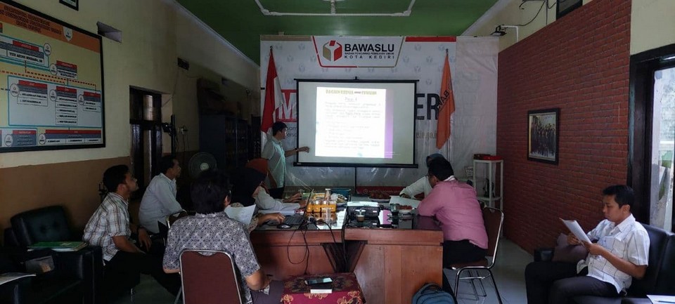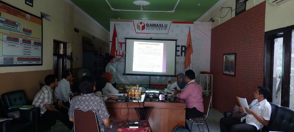 Kota Kediri, 26 Januari 2022. Staf Bawaslu Kota Kediri melaksanakan tindak lanjut dari sinau bareng bedah Perbawaslu 07. Dalam kesempatan kali ini, staf HPP melakukan presentasi ulas materi yang telah disampaikan pada Sinau Bareng Bedah Perbawaslu 07 di minggu sebelumnya. Hal ini bertujuan untuk mengoptimalkan pendalaman materi yang sudah disampaikan. Tindam lanjut ini didampingi oleh seluruh Koordinator Divisi sekaligus Koordinator Sekretariat Bawaslu Kota Kediri