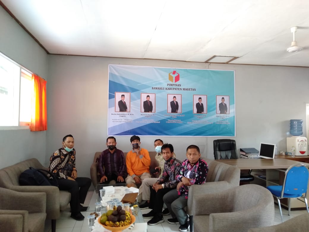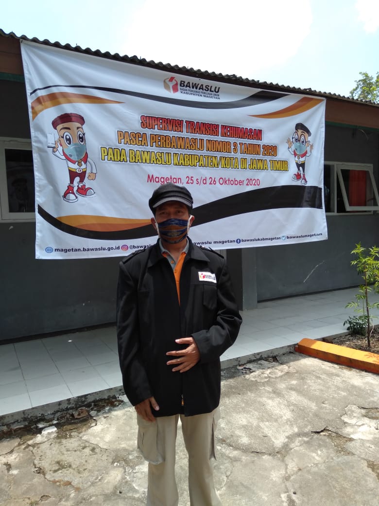 Magetan. Kordinator Divisi Humas Bawaslu Kota Kediri mengikuti acara Supervisi Transisi Pengelolaan Kehumasan Bawaslu Kabupaten/ Kota se Jawa Timur di Kantor Bawaslu Magetan, 25-26 Oktober 2020 Kegiatan Supervisi Transisi Kehumasan Pasca Perbawaslu Nomor 3 Tahun 2020 untuk Bawaslu Kabupaten Kota Se Jawa Timur diselenggarakan oleh Divisi Humas Bawaslu Provinsi Jawa Timur. Kegiatan supervisi dilaksanakan pada Minggu s/d Senin, tanggal 2 s.d 23 Oktober 2020, bertempat di Kantor Bawaslu Kabupaten Magetan, Jalan Timor 66 Magetan. Supervisi ini dimaksudkan untuk mensosialisasikan Perbawaslu Nomor 3 Tahun 2020 tentang Perubahan Atas Peraturan Bawaslu Nomor 1 Tahun 2020 tentang Tata Kerja dan Pola Hubungan Bawaslu, Bawaslu Provinsi Bawaslu Kabupaten/Kota, Panwaslu Kecamatan, Panwaslu Desa/Kelurahan, Panwaslu Luar Negeri dan Pengawas TPS. Disamping itu, Supervisi dimasukkan untuk mengorientasikan konsep an arah gerakan humas Bawaslu Jawa Timur kepada anggota Bawaslu Kabupaten Kota Divisi Kehumasan