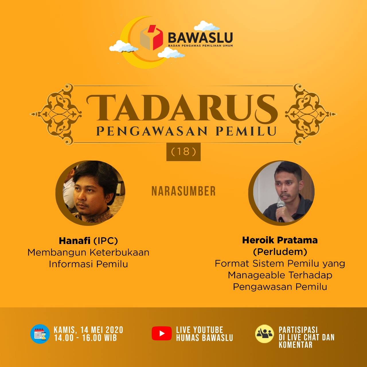 Kota Kediri. Bawaslu Kota Kediri masih setia mengikuti Tadarus Pengawasan Pemilu Bawaslu RI. Hari ini, Kamis, 14 Mei 2020 tema yang diangkat, Membangun Keterbukaan Informasi Pemilu oleh Ahmad Hanafi dari (IPC) yang ditayangkan secara live melalui Youtube. Transparansi sebagai bentuk akuntabilitas Penyelenggara Pemilu baik KPU maupun Bawaslu telah melaksanakan tugasnya sesuai kewenangan yang diberikan oleh peraturan perundangan, sebagai pelayanan pertama sebelum melaksanakan fungsi pelayanan publik lainnya, termasuk di dalamnya adalah partisipasi dalam kebijakan, juga sebagai langkah dalam membangun Pemilu/Pilkada yang lebih berintergritas.