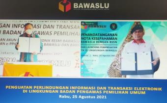 Kota Kediri, 25 Agustus 2021. Bawaslu Kota Kediri mengikuti kegiatan Penandatanganan Nota Kesepahaman Antara Badan Pengawas Pemilihan Umum Republik Indonesia dengan Badan Siber dan Sandi Negara Republik Indonesia yang diadakan oleh Bawaslu RI yang dimulai pada pukul 10.00 WIB.