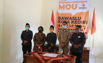 Kota Kediri, 21 Juni 2021. Bawaslu Kota Kediri melakukan perjanjian kerja sama atau MoU bersama Dinas Kearsipan dan Perpustakaan Kota Kediri di Aula Kantor Kesbangpol yang dimulai pukul 09.15 WIB. Acara ini dihadiri oleh Kepala Dinas Kearsipan dan Perpustakaan Kota Kediri Drs.