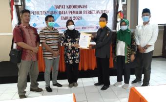 Kota Kediri, 31 Mei 2021. Koordinator Divisi PHL Bawaslu Kota Kediri menghadiri undangan Rapat Pleno Rekapitulasi Pemutakhiran Data Pemilih Berkelanjutan Periode bulan Mei 2021 di Kantor KPU Kota Kediri pukul 13.00 WIB.