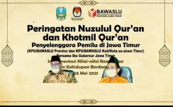 Kota Kediri, 06 Mei 2021. Bawaslu Kota Kediri mengikuti Peringatan Nuzulul Qur'an dan Khotmil Qur'an Penyelenggara Pemilu di Jawa Timur yang diadakan oleh Bawaslu Provinsi Jawa Timur pukul 14.00 WIB.