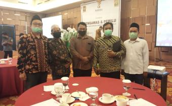 Madiun, 24 November 2020. Ketua Bawaslu Kota Kediri beserta Anggota menghadiri undangan Bawaslu Provinsi Jawa Timur dalam kegiatan Sosialisasi dengan tema “Pengawas dan Pemilu Dalam Rancangan Undang-Undang Pemilu” di Ruang Bima Hotel Aston Madiun.