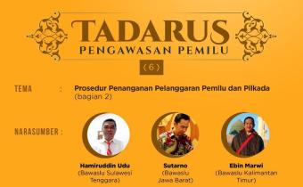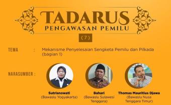 Kota Kediri. Tadarus Pengawasan Pemilu ke-7 kali ini mengangkat tema Penyelesaian Sengketa Proses Pemilu dan Pemilihan yang ditayangkan secara live di Youtube pada hari Minggu, 3 Mei 2020, pukul 14.00 sampai selesai.