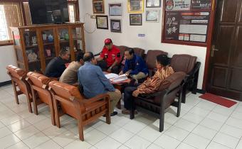 Kota Kediri, 26 September 2023. Ketua Badan Pengawas Pemilihan Umum (Bawaslu) Kota Kediri, Yudi Agung Nugraha, dengan penuh semangat meresmikan Program Kerja Mahasiswa (PKM) di Bawaslu Kota Kediri.